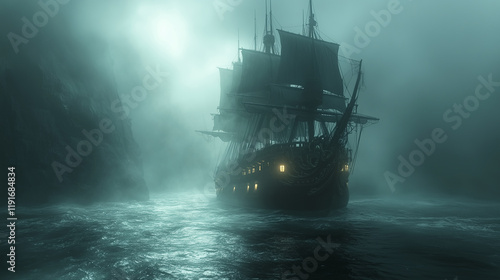 ship, fog, fantasy, adventure, twilight, water, sea, mystery, sailing, light, ocean, darkness, landscape, vessel, exploration, atmosphere, eerie, horizon, travel, journey, wave, silhouette, marin, steam, ancient, lore, coastline, calmness, shadow, mythical, night, pirate, legend, oceanic, scenic, enchanted, ghostly, nautical, weather, ambience, mist, waterfront, coastal, beauty, dramatic, serenity