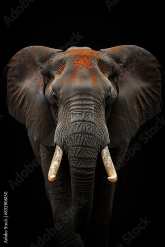Mystic portrait of African Elephant, copy space on right side, Anger, Menacing, Headshot, Close-up View Isolated on black background
