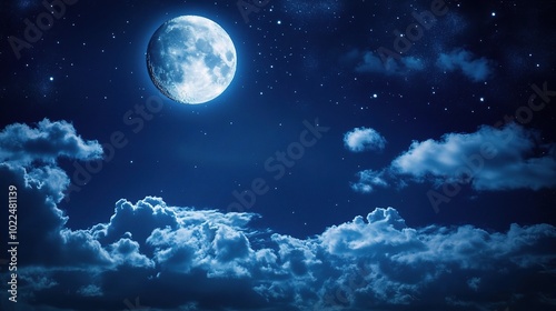 Mystical Night Sky with a Bright Full Moon
