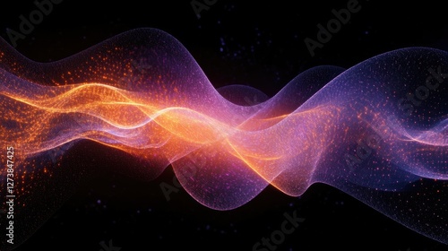 Mystical purple and orange nebula with glowing energy waves floating through the vast cosmic expanse