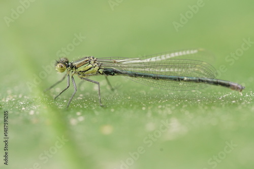 Nahaufnahme einer Libelle, Enallagma cyathigerum, Gemeine Becherjungfer