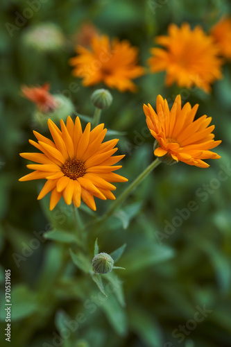 Nails medicinal, or marigold medicinal - herbaceous plant, a species of genus Calendula family Astra. Close-up.With copy space.
