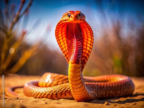 Namibian Coral Cobra Striking Pose: Long Exposure Wildlife Photography for Exotic Pet Backgrounds