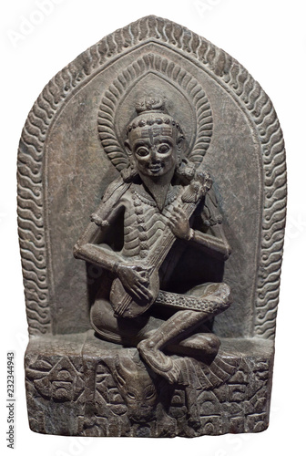 Narada - heavenly musician. Ancient Nepalese stone statue in Patan, Kathmandu Valley, Nepal