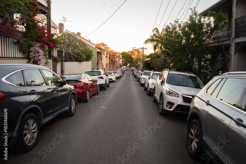 tied-up, car, city, congested, narrow, neighbourhood, neighbourhood, parked, parking, road, sedan, street, suburb, town, vehicle