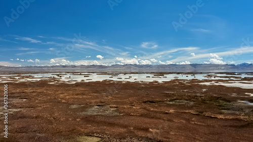 national park, peru, andes, andean, reed, pasture, blue, sky, landscape, trip, journey, voyage, tour, america, fisheye, panoramic, habitat, atmospheric, peaceful, idylli, scenic, water, lake, mountain, hill, rock, rock, reflections, midday, midday, harsh, light, shadow, daylight