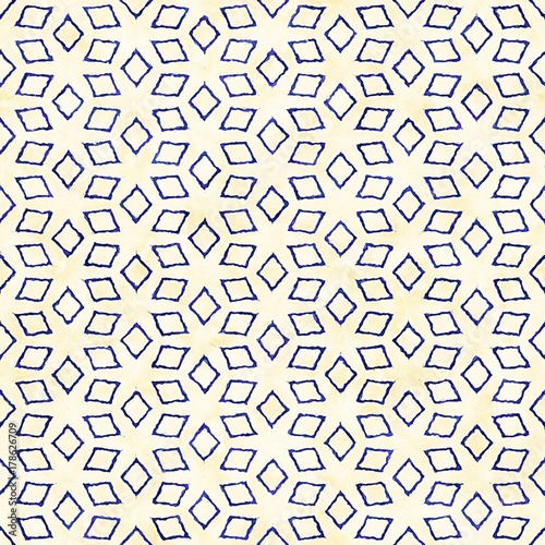 Native batik seamless watercolor artistic boho style colorful square pattern.