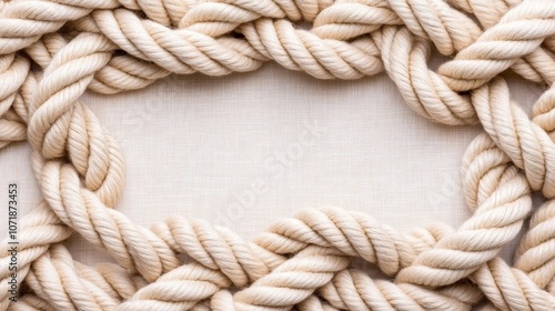 Natural Hemp Rope Frame Border on Beige Linen Background