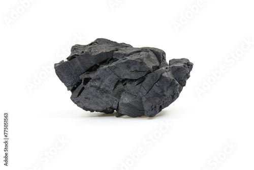 Natural wood charcoal, traditional charcoal or hardwood charcoal isolated on white background. For heating food in cooking. cosmetics. deodorant in the refrigerator. Activated Carbon. BBQ.