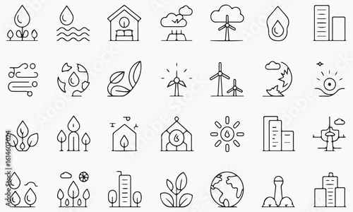 nature, city, icon, plant, water, wind, sun, earth, building, renewable energy, environment, weather, growth, sustainability, clean energy, ecology, landscape, technology, climate, conservation, resource, industry, urban, rural, natural, organic, green, development, power, wind turbine, solar, waterdrop, leaf, globe, storm, cloud, wave, tree, house, skyscraper, city skyline