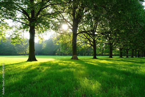 park, tree, meadow, grass, green, sun, sunlight, landscape, nature, tranquil, serene, summer, outdoors, scenic, environment, beautiful, idylli, peaceful, calm, spring, foliage, shadow, morning, day, bright, vibrant, fresh, natural