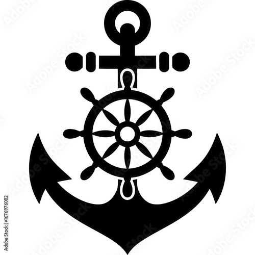 anchor, nautical, maritime, sea, ocean, boat, ship, sailing, voyage, travel, adventure, symbol, icon, silhouette, black-and-white, graphic, design, vector, illustration, vintage, retro, marin, water, transportation, navigation, helm, steering wheel, mariner, sailor, coast, beach, summer, vacation, tattoo, logotype, badge, emblem, isolated, clip art