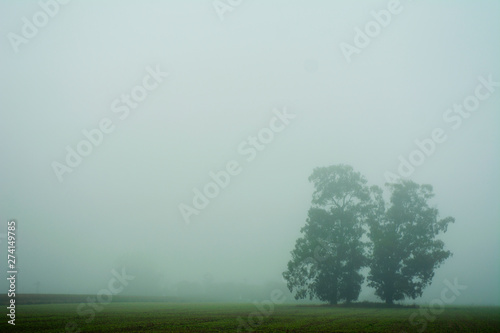 tree, fog, landscape, nature, forest, heaven, field, morning, fog, grass, green, blurred, autumn, winter, misty, blue, alone, lake, countryside, cloud, meadow, season, summer