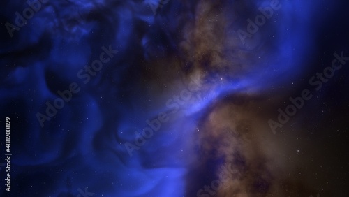nebula gas cloud in deep outer space, science fiction illustrarion, colorful space background with stars 3d render