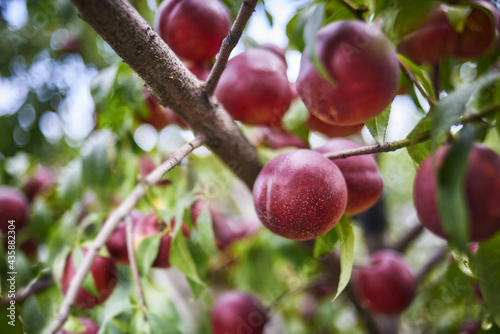Nectarines ripening on the fruit tree on an orchard in Ukraine.