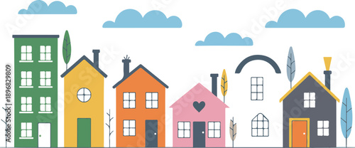 house, building, city, home, illustration, vector, town, architecture, icon, cartoon, street, design, window, apartment, building, exterior, roof, cute, village, house, set, urban, estate, residential, construction