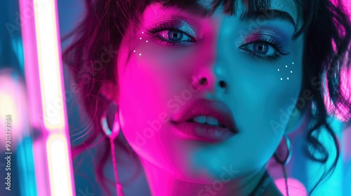 neon, beauty, portrait, vibrant, colours, make-up, face, closeup, glamour, light, artistic, modern, stylish, photo, woman, curly, shimmering, skin, contrast, expression, elegance, fashion, cosmetic, glowing, aesthetic, young, dazzling, eye, professional, mood, illuminated, head shot, trendy, photogenic, creative, stunning, model, dramatic, portraiture, expressionism, copy, space, copy space, background