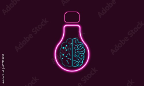 lamp, neon lamp, icon, neon light, flask, chemistry, laboratory, glasses, idea, chemical, science, object, brain, laboratory, vector, symbol
