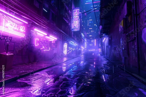 Neon Cyberpunk City, Urban Future Metaverse, Night Purple Street Texture Background, Copy Space