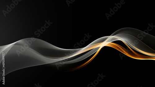 Néon effet flou et texturé, vague en mouvement, doré et noir sur fond noir. Pour conception graphique, bannière.