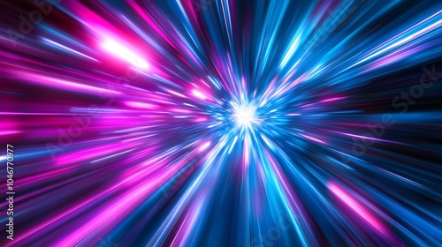 Neon light windows moving in to deep space center zoom effect, bright blue and pink. futuristic explosion of colors in the shape of blue windows. Modern futuristic. pattern-like scape. Background