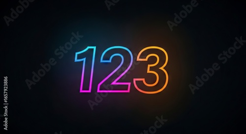 number, graphic, design, neon, digit, 123, outline, gradient, colours, spectrum, dark, background, light, vibrant, digital, art, advertising, poster, social, media, logotype, marketing, book, cover, screen, display, vector, isolated, graphic design, image, illustration, design element, copy space
