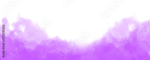 Neon purple dust smoke cloud overlay isolated on transparent and white background. Neon violet purple smog and dust explosion rising. Design elements for Compositing, cutout