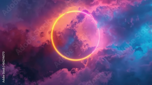 neon, circle, ring, sky, cloud, purple, blue, glowing, dreamy, aethereal, high-coloured, bright, light, colours, abstract, background, art, digital, design, graphic, pattern, texture, shape, geometric, modern, futuristic, space, fantasy, hallucinogen, cosmic, galaxy, atmosphere, style, aesthetic, creative, imagination