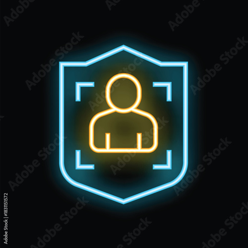 security, privacy, protection, datum, user, neon, shield, face, recognition, technology, digital, online, cyberspace, cyber, safeguard, symbol, icon, concept, abstract, background, blue, yellow, glowing, bright, dark, modern, futuristic, information, safety, confidential, access, identity, biometric, verification, authentication, scan, system, network, personal, sensitive, secure, encryption, firewall, anti virus, hacker, threat, prevention, compliance