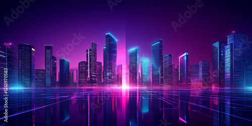 Neon Skyline: Futuristic Cityscape with Vibrant Lights