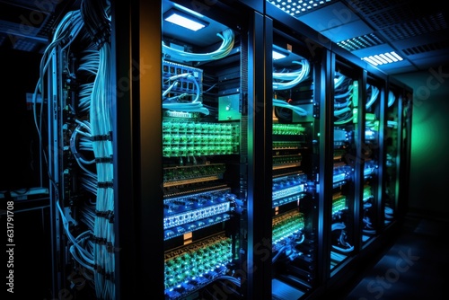 Network hardware. Server room Telecommunication technology. generative with Ai.