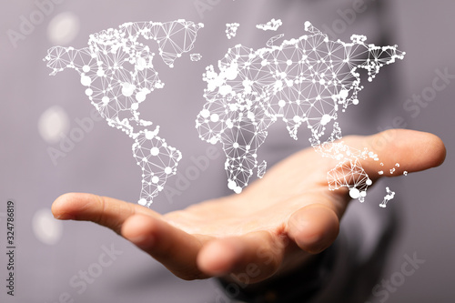 network holding in hand 3d connection data.