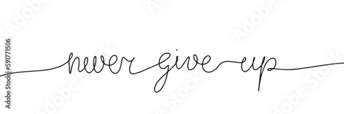 Never give up single line. One line continuous text outline vector line art illustration.