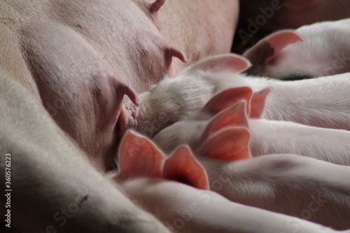 new born pigs feeding