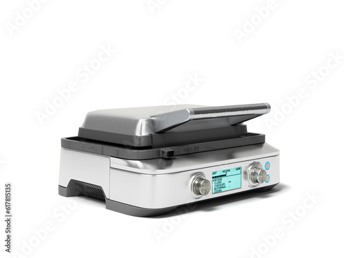 new closed metal waffle maker perspective view 3d render on white