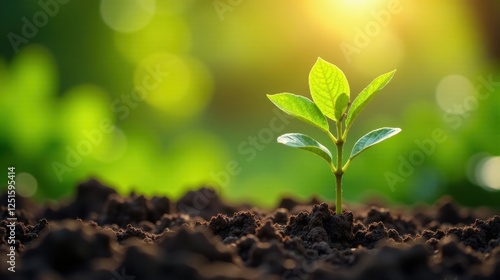 New Life Emerging A Young Sprout Reaching for Sunlight in Rich Earth