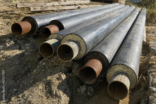 New water pipes. Water pipes close up. Replacement of water pipes.