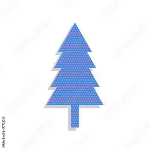 New year tree sign. Vector. Neon blue icon with cyclamen polka d