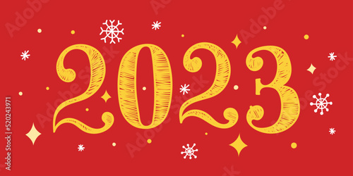 happy new year, jan, art, snowflake, star, gold, yellow, red, calendar, traditional, new year, trendy, date, cover, element, 23, concept, text, event, invitation, festival, calligraphy, symbol, logotype, vector, signs, 2023, year, illustration, holiday, greeting, new, decoration, card, winter, background, banner, celebrate, design, celebration, number, graphic, party, template, poster, decorative, typography, season