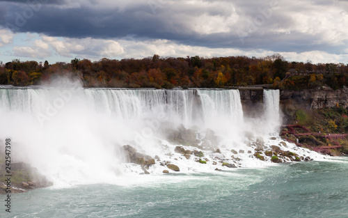 Niagara Falls. A view of the American Falls, a part of the Niagara Falls. The falls straddle the border between America and Canada.
