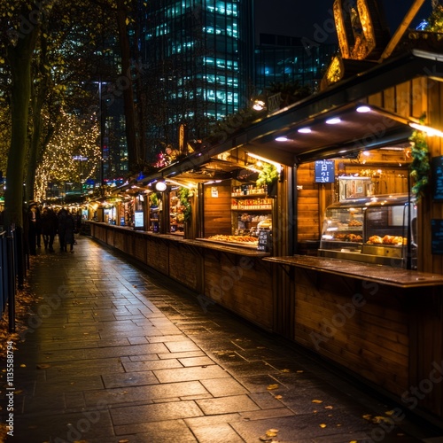 night, market, stall, light, city, building, urban, winter, christmas, holiday, festive, food, drink, wooden, street, path, paseo, people, crowd, evening, dark, illumination, glow, ambience, atmosphere, scene, view, perspective, background, texture, detail, design, architecture, autumn, leaf, pavement, shop, display, product, good, sale, retail, commercial, business, tour tourism, travel, recreation
