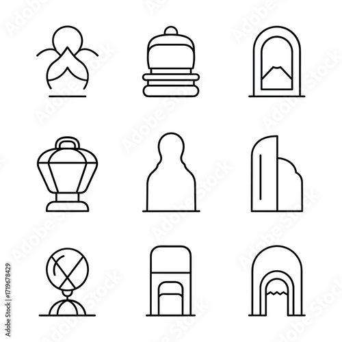 icon, abstract, line art, outline, symbol, graphic, design, element, object, architecture, building, structure, shape, minimal, simple, black-and-white, set, collection, modern, geometric, conceptual, graphic design, illustration, clean, isolated