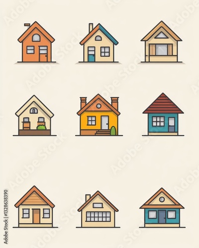 house, home, building, architecture, design, icon, icon, set, collection, illustration, graphic, element, symbol, simple, cute, colourful, cartoon, property, residential, dwelling, bungalow, villa, real estate, apartment, family, shelter, structure, urban, suburban, rural, estate, domestic, roof, window, door, wall, style, line, art, vector, image, digital, download, asset, resource, template, modern, minimalist