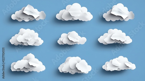 cloud, paper, white, blue, background, design, illustration, graphic, art, sky, texture, abstract, image, pattern, collage, cut-out, folded, crumpled, shape, form, element, style, aesthetic, visual, composition, arrangement, 9, set, collection, digital, artwork, creative, concept, idea, three, row, scene, object, render