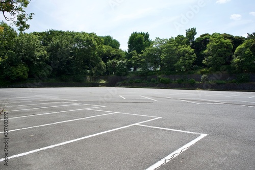 road, asphalt, sky, empty, street, landscape, line, nature, travel, tree, green, blue, lane, park, transportation, path, parking, country, asia, asian, japan, tokyo