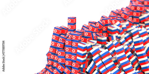 North Korea and Russia political conflict, original 3d rendering conceptual illustration, original flag textures