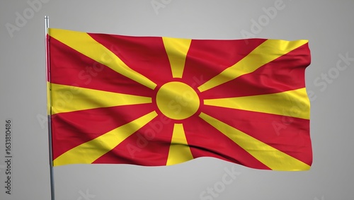 flag, national flag, patriotic, wrinkled, fold, textile, symbol, grey background, studio shot, horizontal, macedonia, macedonian, flag