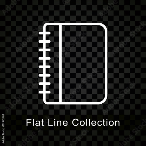 icon, notebook, illustration, spiral, organiser, vector, office, signs, design, flat, line, isolated, symbol, object, linear, document, notepad, business, book, message, thin, note, diary, address, white, background