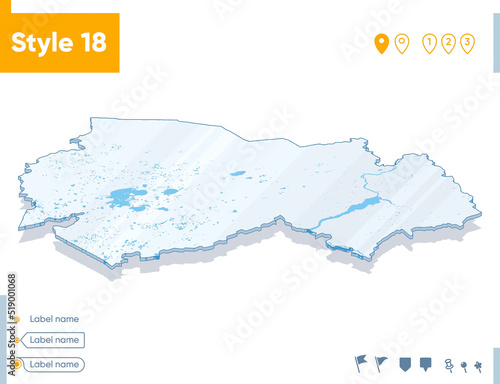 Novosibirsk Region, Russia - 3d map on white background with water and roads. Vector map with shadow.