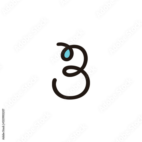 Number 3 water drop geometric symbol simple logo vector